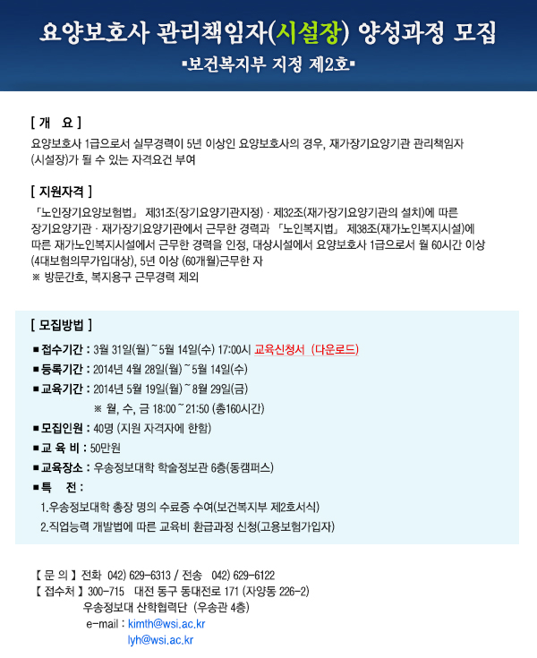 요양보호사 관리책임자(시설장) 양성과정 모집 ▪보건복지부 지정 제2호▪