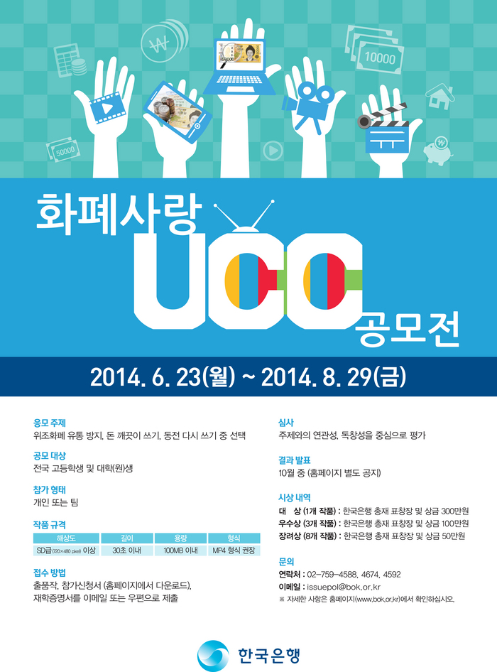 대학광장 공지사항 코로나19 공지사항 혁신지원사업단 LINC 3.0 사업단 공지사항 새소식 보도자료 학과별 명장 Story 입찰정보 공지사항 홈 대학광장 공지사항 화폐사랑 UCC공모전 카테고리 : | 작성자 : 관리자 | 작성일 : 2014.07.01 | 조회수 : 12,291 첨부파일 [1]화폐사랑+UCC+공모전+개최+안내(참가신청서+및+동의서+포함).hwp [1]공모전+안내+게시문(포스터).pdf 공모전안내게시문(포스터).jpg 목록