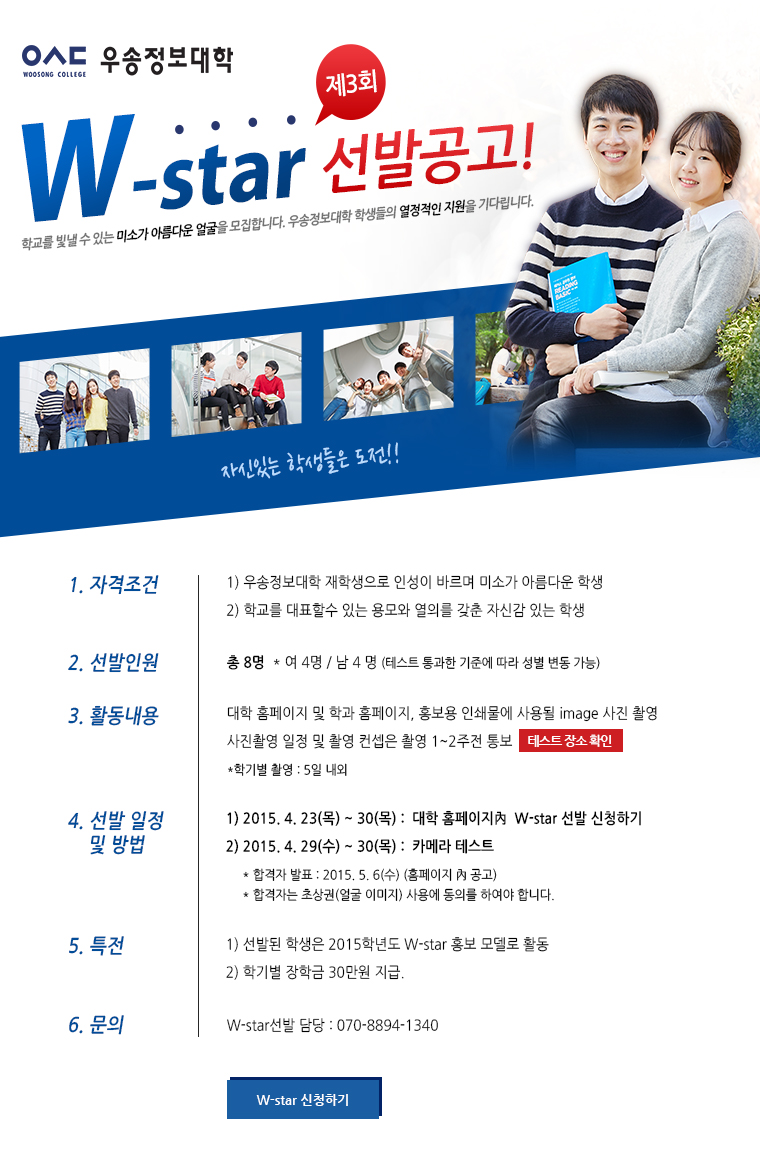 대학광장 공지사항 코로나19 공지사항 혁신지원사업단 LINC 3.0 사업단 공지사항 새소식 보도자료 학과별 명장 Story 입찰정보 공지사항 홈 대학광장 공지사항 우송정보대학 제3회 W-star 선발공고 카테고리 : | 작성자 : 관리자 | 작성일 : 2015.04.22 | 조회수 : 10,424 목록