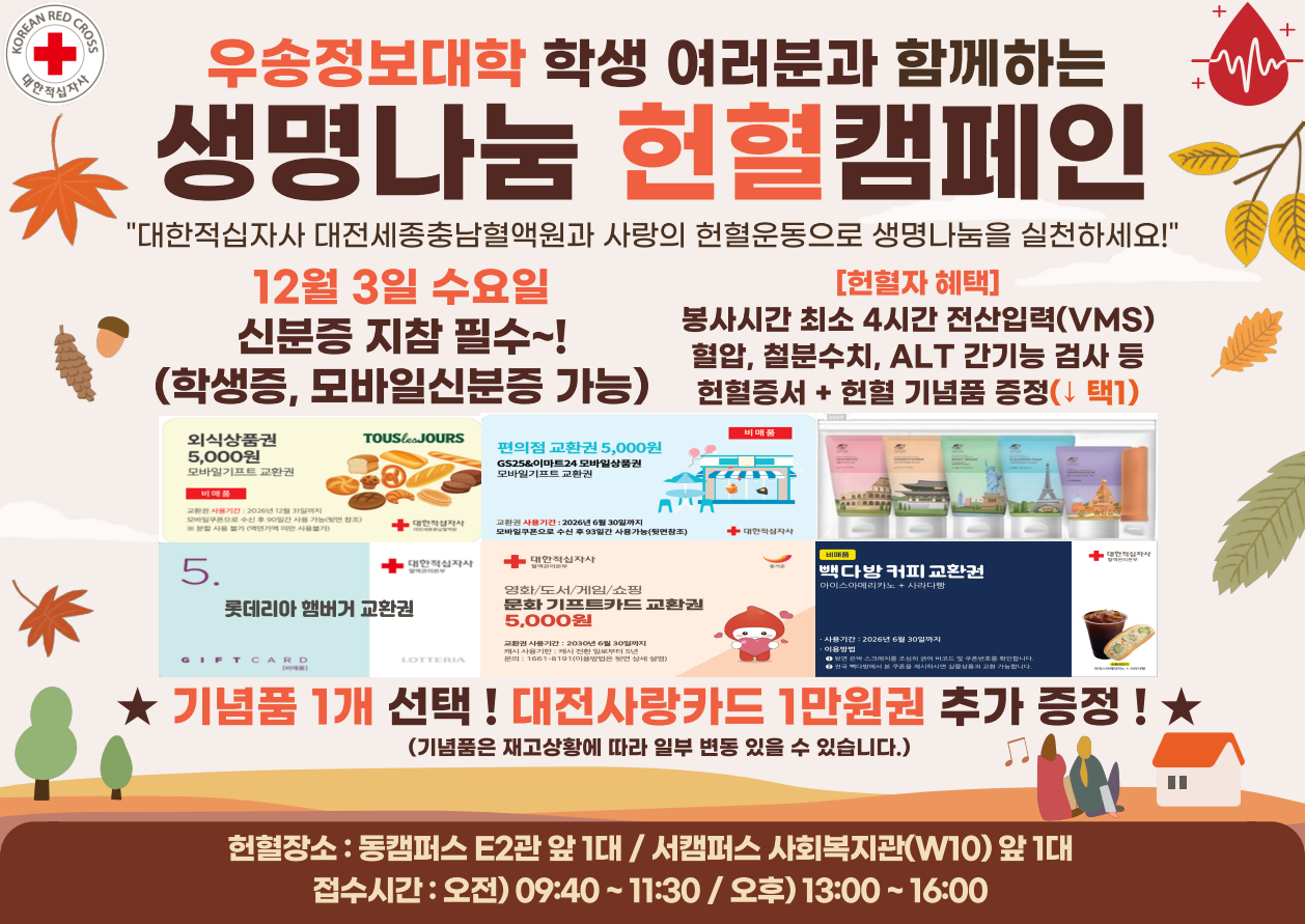 2025년 2학기 「우송정보대학」 사랑의 헌혈운동 협조 요청